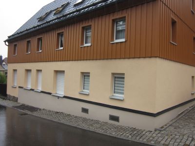 Fassadenneugestaltung mit farbigem Silikatputz in Krumhermersdorf. |